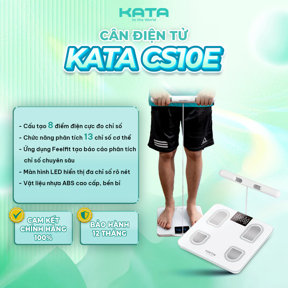 Cân sức khỏe điện tử KATA CS10E được KATA Technology nghiên cứu và phát triển, được kỳ vọng là “trợ lý sức khỏe” hàng đầu trong mỗi gia đình với độ chính xác cao, hỗ trợ lập báo cáo tổng thể 13 chỉ số cơ thể thông qua ứng dụng Feelfit thông minh.