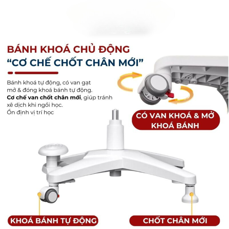 – Bánh xe 360 có khoá bánh tự động dễ dàng di chuyển