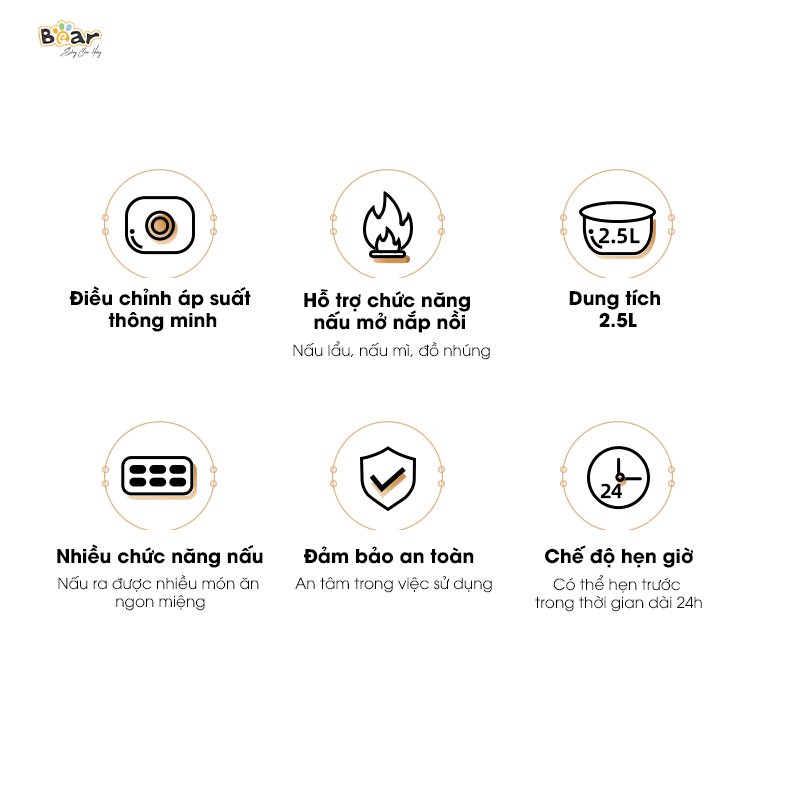Vậy với những tính năng trên, nồi áp suất Bear 2.5L sẽ mang lại lợi ích gì cho người dùng? Hãy cùng Bear Việt Nam khám phá ngay dưới đây nhé!