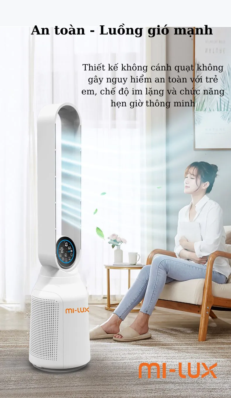 Quạt khôgn cánh Mi-Lux A4 Pro – phiên bản nâng cấp mới nhất năm 2023 – Quạt với thiết kế không cánh độc đáo an toàn cho trẻ nhỏ và gia đình, khả năng tạo luồng gió mát tự nhiên cùng cơ chế thanh lọc không khí, hạn chế tiếng ồn, tiết kiệm năng lượng,… Mi-Lux A4 pro sẽ là một lựa chọn tốt cho ngôi nhà bạn để sẵn sàng cho mùa hè sắp đến.